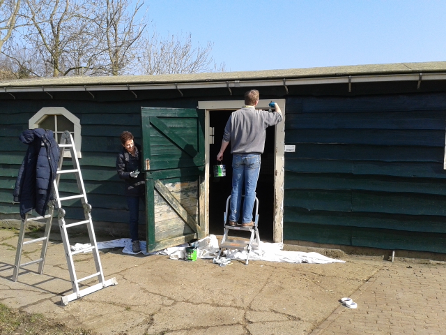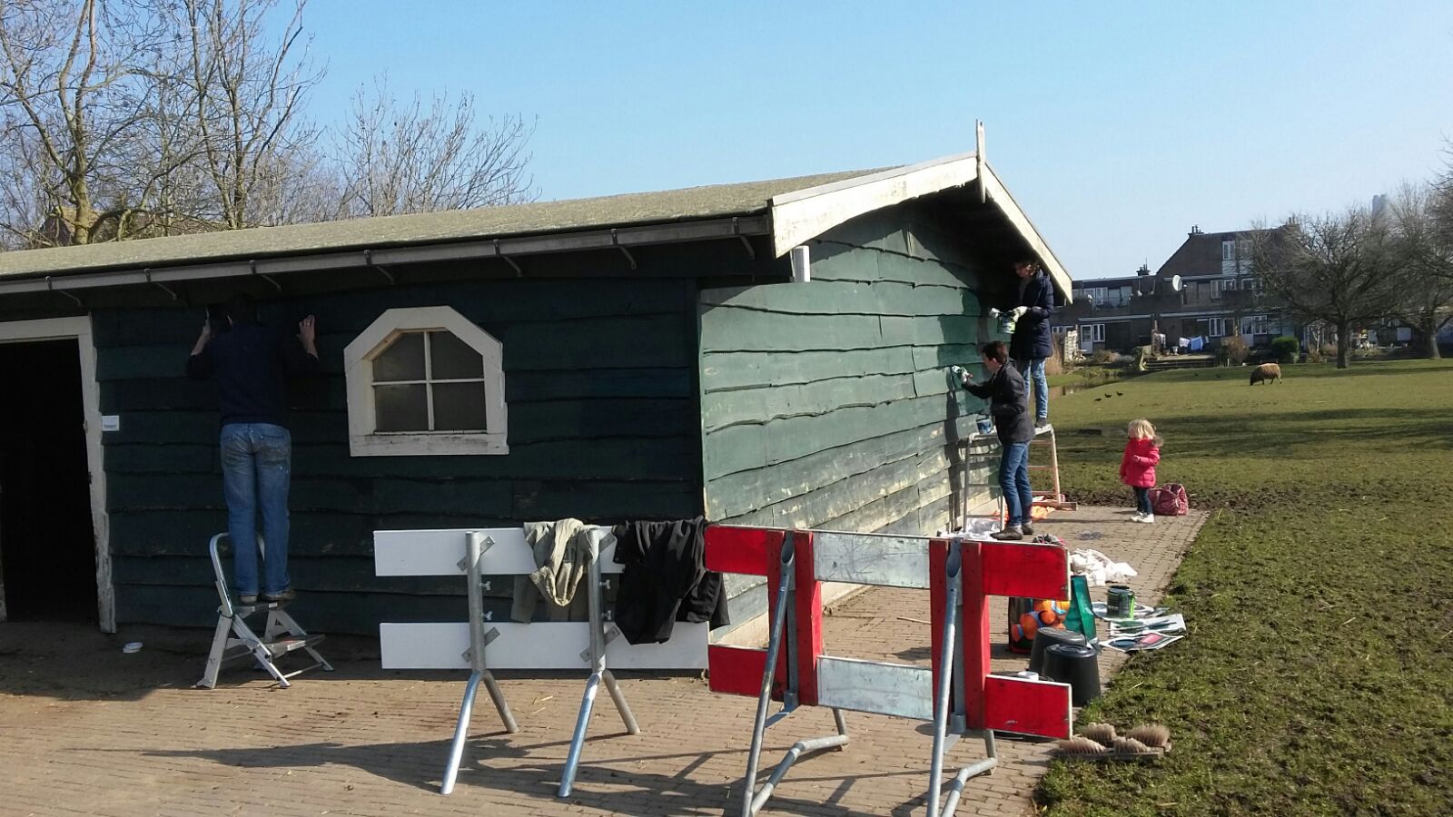 maandag 14 maart 2016 21:02 Op 12 maart hebben we als fractie een steentje bijgedragen aan NL Doet! Om 10.00 uur stonden we in onze oude kleren klaar om onze handen uit de mouwen te steken op de kinderboerderij in het Tanthof. Als klus kregen we de geitenstal. Na eerst barricades opgeworpen te hebben om de nieuwsgierige geiten op afstand te houden, konden we aan de gang met staalborstels en daarna de verfkwast. Het was heel dankbaar werk: de stal zat zo slecht in de verf dat het er na onze amateurverfkunsten weer prachtig uitzag. In de middag hebben andere vrijwilligers de stal afgeverfd.