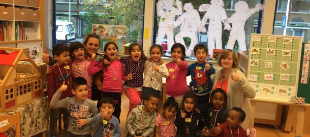 Wij waren heel benieuwd naar wat we al konden zien van deze samenwerking. Dat werd bij onze binnenkomst al gelijk duidelijk. Het wijkcontactpunt van Delft voor Elkaar is in de school gehuisvest. Hiermee is het voor ouders heel laagdrempelig geworden om allerhande vragen te stellen over activiteiten in de wijk en bijvoorbeeld regelingen voor mensen met een laag inkomen. Zo kan o.a. deelname aan het jeugdsportfonds hier gelijk geregeld worden. Wegwijs maken en meedoen wordt zo op eenvoudige wijze bevorderd.
